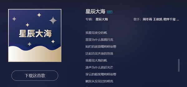 这首歌是由周冬雨、刘昊然、宋祖儿等领衔献唱的《星辰大海》,所属专辑《星辰大海》;