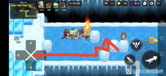 往下找到一个非常非常长的冰面,我们要后面从右边才可以去刚刚找不到的地方。