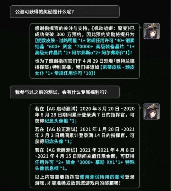 机动战姬聚变预约奖励大全