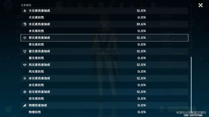 雾切的被动分为两部分,一个是固定的全元素伤害加成(精1为12%),该伤害加成会体现在面板里,对应的角色面板里的水、火、冰、雷、草、冰、岩元素伤害加成都会增加。另一个被动是根据持有的雾切之巴印个数,额外获得自己的元素类型的元素伤害加成。该额外加成的只是角色神之眼对应的元素的伤害加成,并不是全元素伤害,不过同样会体现在角色面板里。之所以在强调会体现在角色面板里,是想说明雾切的被动的加成对具有锁面板机制的技能是生效的。