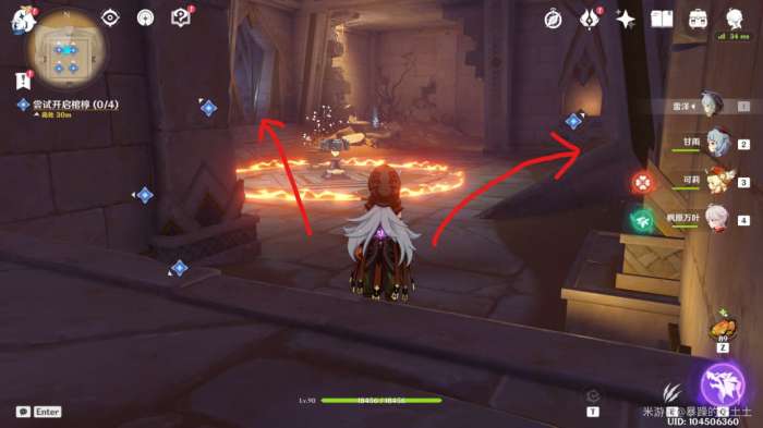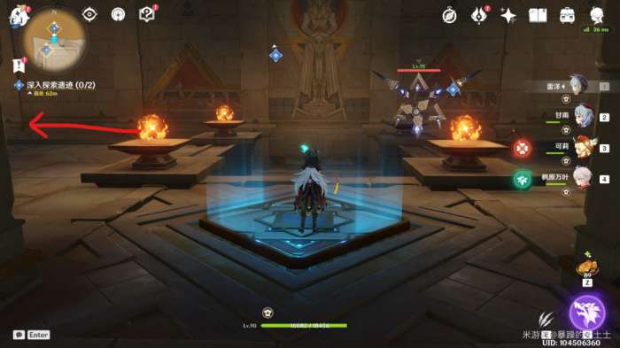 (4)来到下图的位置,按下图所示完成解谜,然后引导两个火种激活火炬