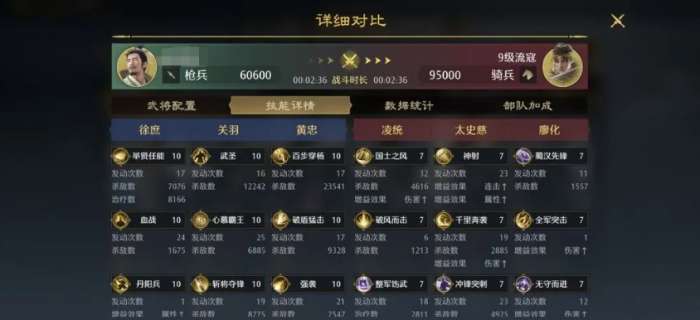此时给关羽搭配的能力上面,大家可以给他带一些有反击技能的效果,然后配合关羽跟黄忠的话,他们自身本身就有的指挥技能,可以让队伍同时拥有了反击和指挥的两种特点,但是这两种特点大家都要注意为它搭配足够的枪兵才可以让这个阵容有足够的能力可以使用,然后徐庶放在其中的话,主要是因为他的技能效果当中可以补一些重伤的能力,而且它也可以带来威压数值的积累,所以在队伍当中它的特点也是可以利用学术的能力达到最大化的能力,如果大家没有得到关羽的话,那么这里可以替换成魏延,魏延在其中的能力比较特殊的一点来说就是阵容走的就是指挥枪的类型了,因为上面推荐的这类效果可以算是加强版的效果。