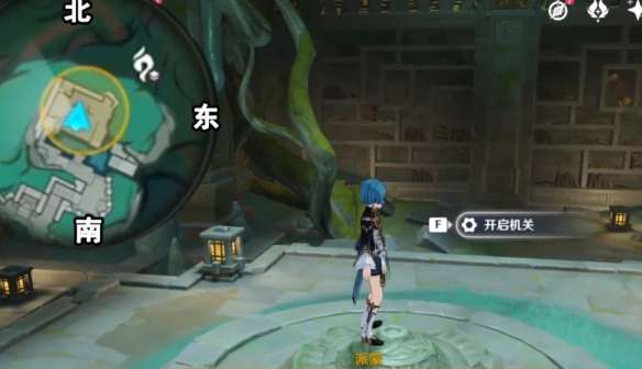 4、玩家来到机关中,和碑铭互动,然后击败魔物。