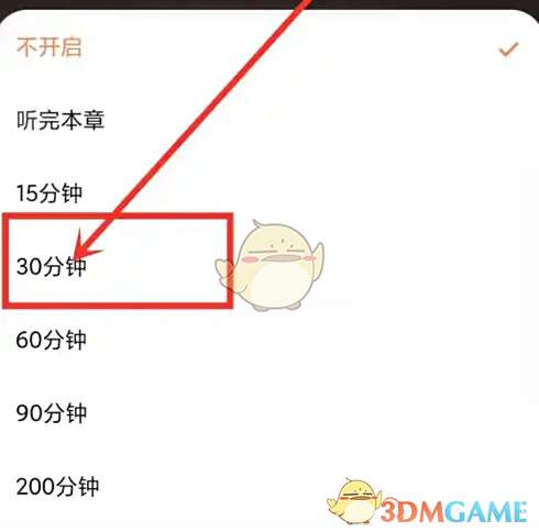 3、进入定时页面,选择时间即可设置定时关闭听书。