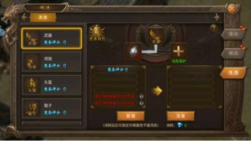 基本洗练:洗练需要用一个基础材料和四个可选择材料,基础材料为必备材料,可选材料增加必出高级属性的几率;