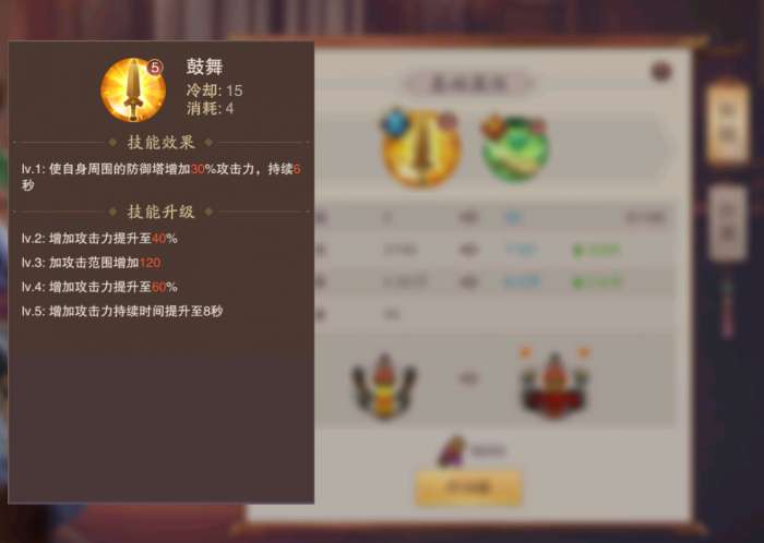 2.推图,打魔王必备英雄,PVE技能是增加炮塔攻击力,全游戏唯二的两个加防御塔攻击的武将。