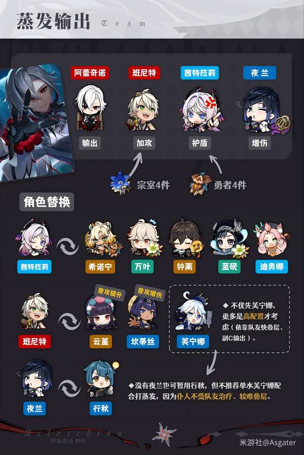 ① 蒸发玩法是仆人的标准反应组队,因为元素特性使得仆人即便打完一整套仆人也不必太担心转火底的情况,反应非常稳定。