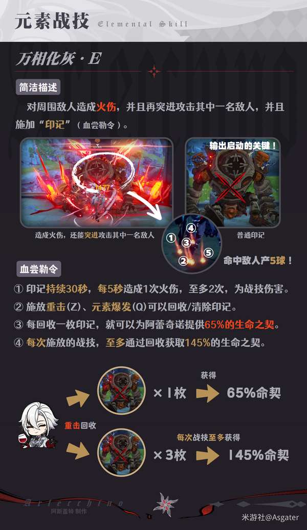 ② 战技施放时命中敌人产出5颗火元素微粒,后续印记不产球。