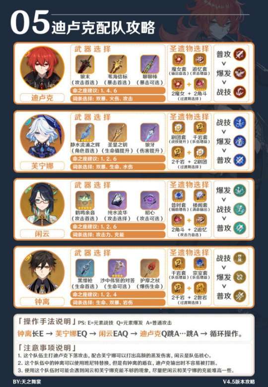 ◆ 这个队伍闲云是核心,迪卢克是站场输出,芙宁娜后台配合迪卢克打蒸发伤害和加伤。