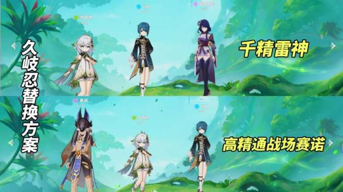 如果因为错过了纳西妲而无法组成完整的队伍,可以考虑其他替代角色,如艾尔海森、草主和柯莱双挂草、行秋和久岐忍。一些玩家建议尝试丐版的草主、柯莱、行秋和久岐忍组合来获得更好的游戏体验。如果这个组合仍然令人满意,等到纳西妲的重现版本出现时,就可以尽情抽取了。