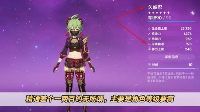 根据原神的伤害实测结果,精通对超绽放的提升率是逐渐递减的。如果你的精通值达到800或900,对久岐忍的伤害影响不会太大。玩家们常说“千精”,主要是为了便于描述这种流派玩法。此外,建议将久岐忍的角色等级尽可能提升至90级,因为与80级相比,精通相同的情况下,伤害可以提高约34%。这种提升比通过刷圣遗物来提高精通要更有效。