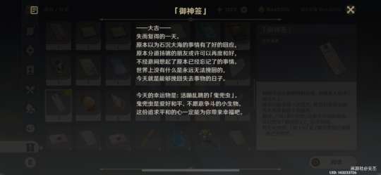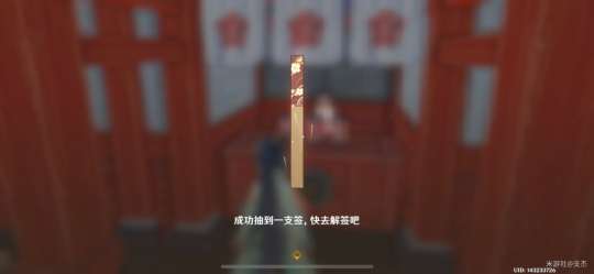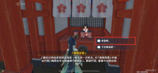 交互“「御神签箱」”,选择“求签吧。”,点击签筒,会获得一支竹签