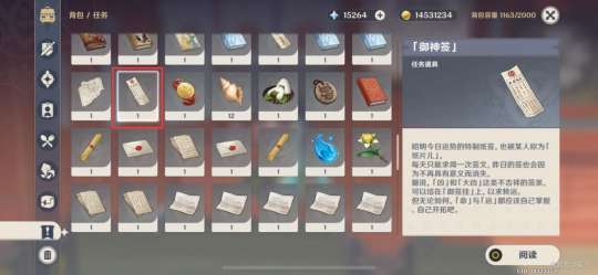 打开背包任务栏,点击「御神签」,查看运势
