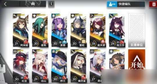 在敌人强度不高时可以放置两位先锋,等到后期再换成重装和近卫。