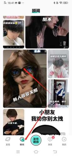 1、进入配配APP后,首先让我们点击下方的“瞬间”,随便进入一个房间;