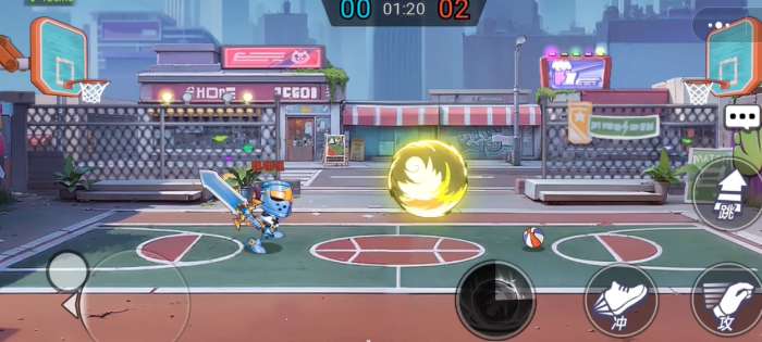 主动技能可以使它缩成一个球体,然后向敌方的位置弹出,以撞击反弹的方式,很快的命中敌人的具体所在位置,将他击退后方能够获得胜利。被动技能需要提升至5星才能够扩大伤害的范围,在防守的过程中将会很快的提升实力,使玩家处于一个暂时安全的状态。多个技能在使用后可以产生连招组合效果,两次高跳后可以拦截高空中传来的篮球在空中拍击时都可以截下对手中的篮球,这一项操作也是实力的象征。