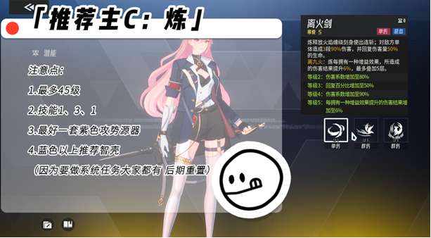 推荐阵容:炼(主要输出)+多乐丝+格雷+卡奇