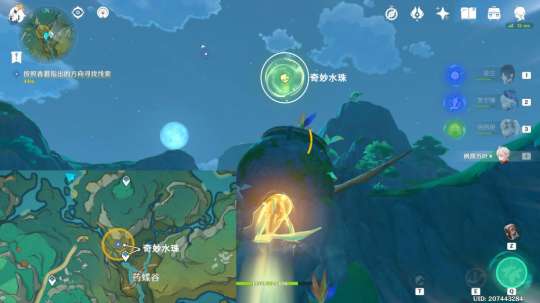往地图的西方向看,利用奇妙水珠,前往营地