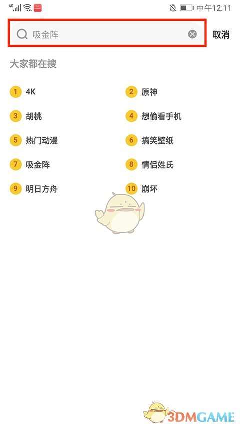2、进入搜索界面,输入壁纸名称,这里以【吸金阵】为例,