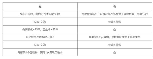 技能描述:我方每登场1个召唤物,减少绝招1点怒气消耗,最多减少7点怒气消耗。