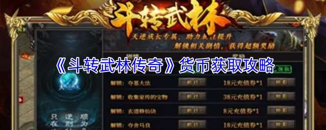 以上就是小编带来的《斗转武林传奇》货币获取攻略,更多相关攻略,请关注pk游戏网。