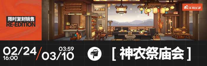 活动说明:活动期间将限时复刻【神农祭庙会】系列与【大荒天师苑】系列主题家具