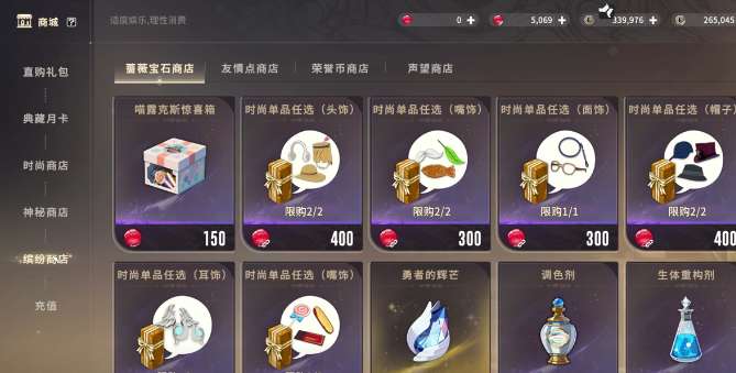 这里是一个隐藏比较深而且氪金指数比较高的部分。玩家在点开之后可以进入到缤纷商店,在这里也有很多的选择,例如玩家可以选择喵露克斯惊喜箱,在打开之后可以得到14个道具,还有一个扭蛋币。