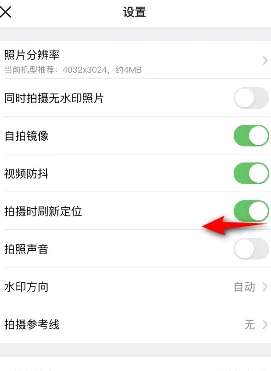 3、之后将拍摄时刷新定位的滑动按钮向左滑动,滑动完成后便可以设置拍摄时刷新定位。