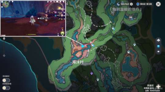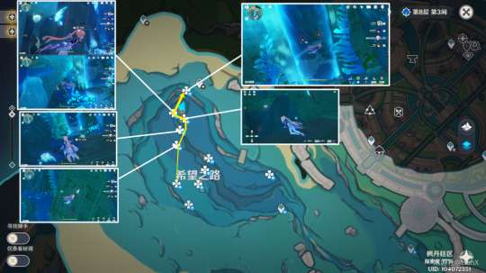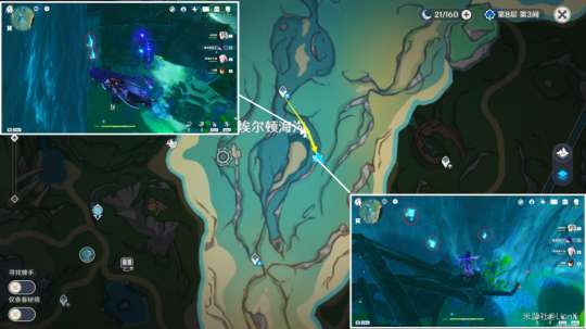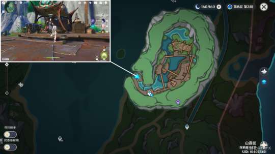传送点传送过来后直接向前走,到图中的位置后跳下去,到达白淞镇水下区域,与大枫丹湖连通的水下部分。