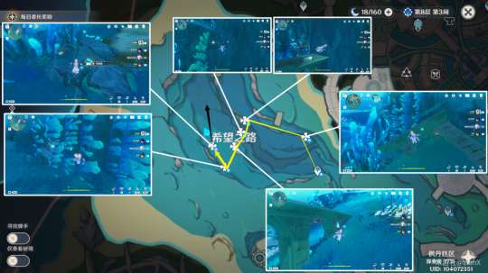 路线九的第二、三点在希望之路的峡谷下面的建筑上。路线九的最后一个点捡完后,黑色箭头指向的点是路线十的第一个点。