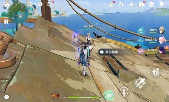 3、来到沉船位置能够看见佩尔曼雅,上前进行交谈。