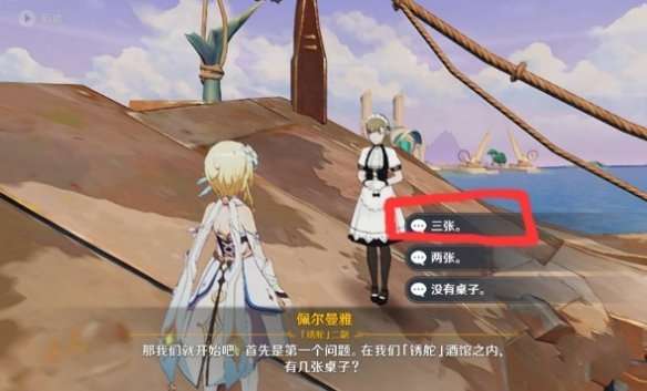 4、需要完成对话答题,答案分别是:三张、三个、海露花。