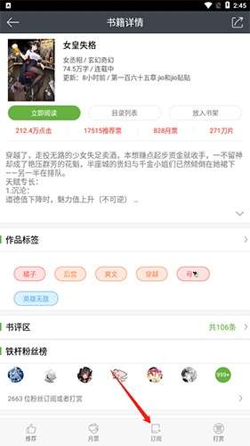 2、进入书籍详情,点击“订阅”选项,然后点击“全本订阅”选项。