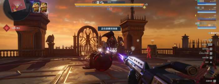 和普通猎场相比,在刷图方面没有太大的差别,在对局的上方有一个大的BOSS的血条,这个就是两队整体的进度,可以看到对手的进度是是不是比己方高,及时进行追赶,同时双方实时的站位以及进度也都是比较直观的能看到的。