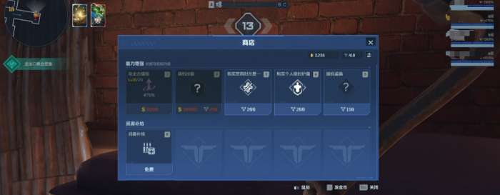在每个补给点,都是可以提高角色攻击力的,右边还有随机赠送的道具可选,或者也可以指定购买其中的某个道具;在对局过程中,还可以去使用各种不同的技能对敌人造成干扰,这些技能都是通过抽取的方式能获得的,相对具有随机性,自然也让战斗更加具有不确定性。
