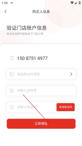 4、然后用户填写身份证等信息验证门店账户信息,点击立即绑定即可看到自己的线下门店信息啦。