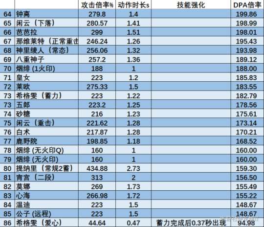 DPA的计算和动作时长的计算是通过使用NVIDIA GeForce Experience内置的录屏软件在60帧的帧率下录制,并导入AE中进行帧数计算和时间计算。由于人为的视觉误差和判断方法的不同,可能存在1~2帧左右的误差。同时,由于原神只有60帧的游戏速率,因此误差可能会有些较大。
