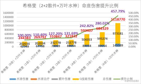 1命:提升了一点天赋的辅助效果,讲道理是没有多明显,他和闲云不一样,闲云是伤害够高次数也够用,希格雯是伤害不够高次数也不够用。唯一有用可能是水球加弹跳奶量进一步提升和覆盖率提升了。